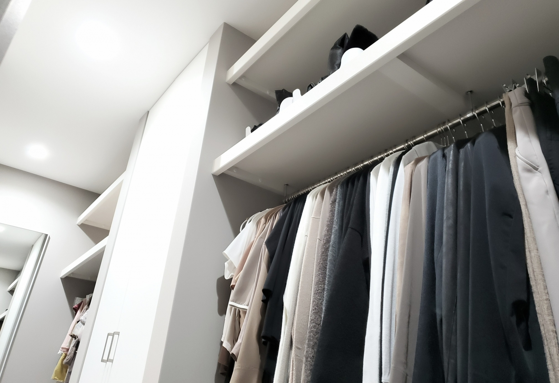 次に、広さ不足による収納の圧迫問題に対しては、収納するものの量や大きさを事前に整理しておくことが前提となります。例えば、スーツケースや布団など規格外の大型アイテムを収納する場合、ハンガーパイプだけでは足りませんから、枕棚や可動棚、引き出しを取り入れましょう。これにより、収納の柔軟性が高まり、実際に使いやすいクロークになります。